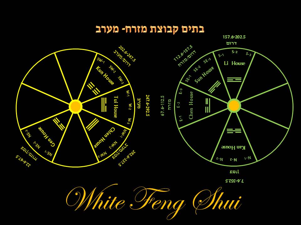 חלוקת הבתים בעולם לקבוצה מערבית או קבוצה מזרחית נעשית על פי המעלה המדויקת של המצפן בעורף המבנה. ( בשונה מאסכולות ופורמולות אחרות).